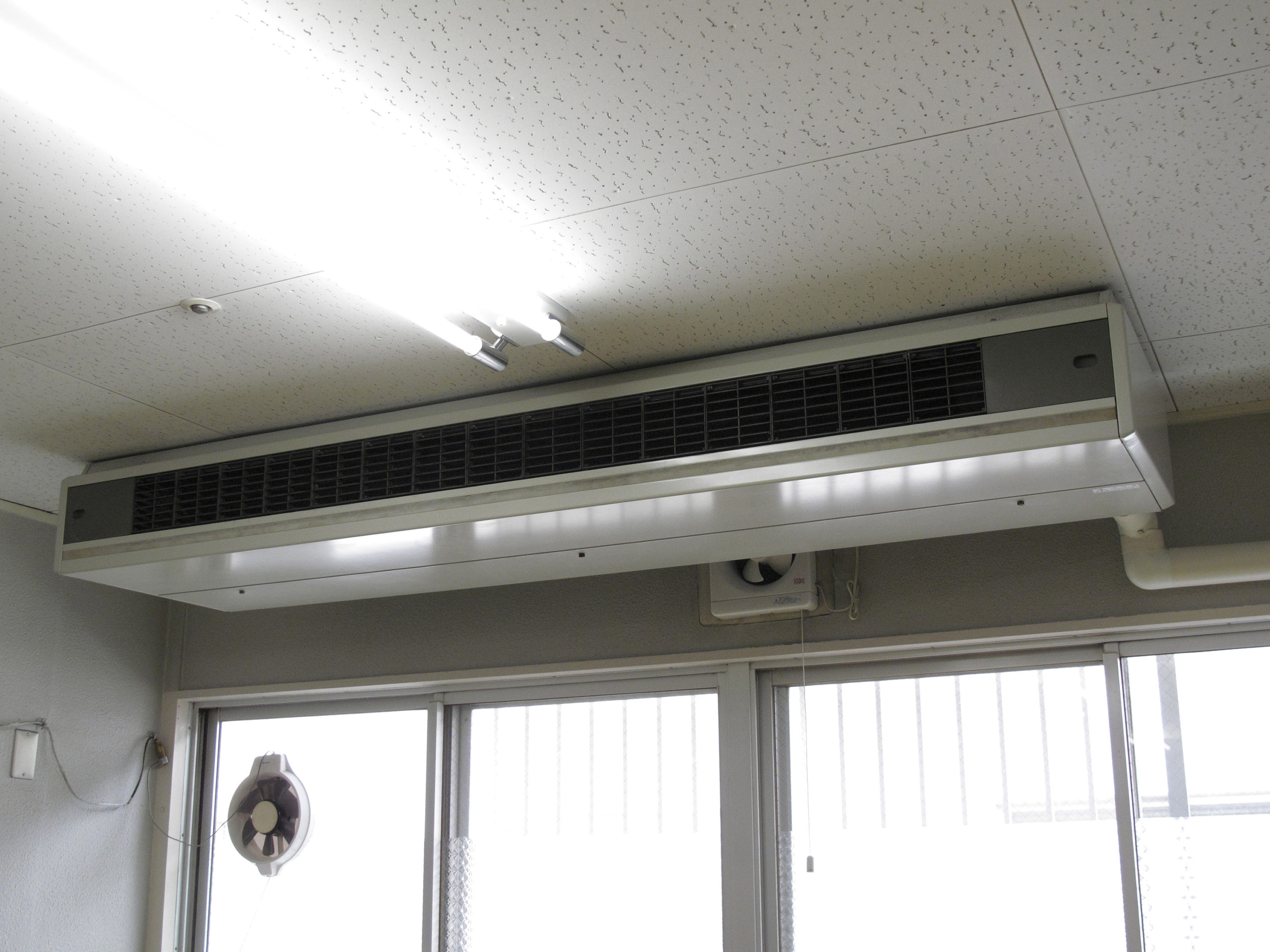 壁掛けのルームエアコンが業務用の馬力を持ったタイプです。馬力により大きさが変わります。比較的に工事費用が安価でメンテナンス性も良く、小さい事務所に使用されることが多いです。
